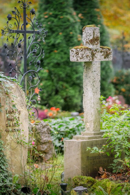 An einem anderen Tag kommt meine Freundin. Sie ist erst letztes Jahr gestorben. Mit ihr rede ich über die Blumen auf den Gräbern, über das Herbstlicht. Ich frage sie, wie es jetzt so ist in ihrem neuen Zuhause. Sie fragt nach den Kindern, nach meinen und nach ihren. Und dann erzähle ich ihr, dass ich fast jeden Tag an sie denke. Weil ich zum Beispiel Socken in meinem Kleiderschrank finde, die ihre Oma gestrickt und meine Freundin an mich weitergegeben hat.